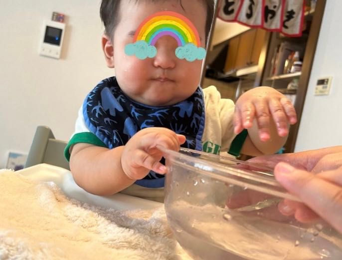 これで水に慣れてきたので、お風呂場でしっかり水浴びして、そのまま体を洗ってお風呂する日もあります。普段、お風呂でお顔を洗うのは嫌いなのに、遊びながらだと、お顔が濡れても問題なく楽しんでいるので、息子は雰囲気が大事なようです。笑