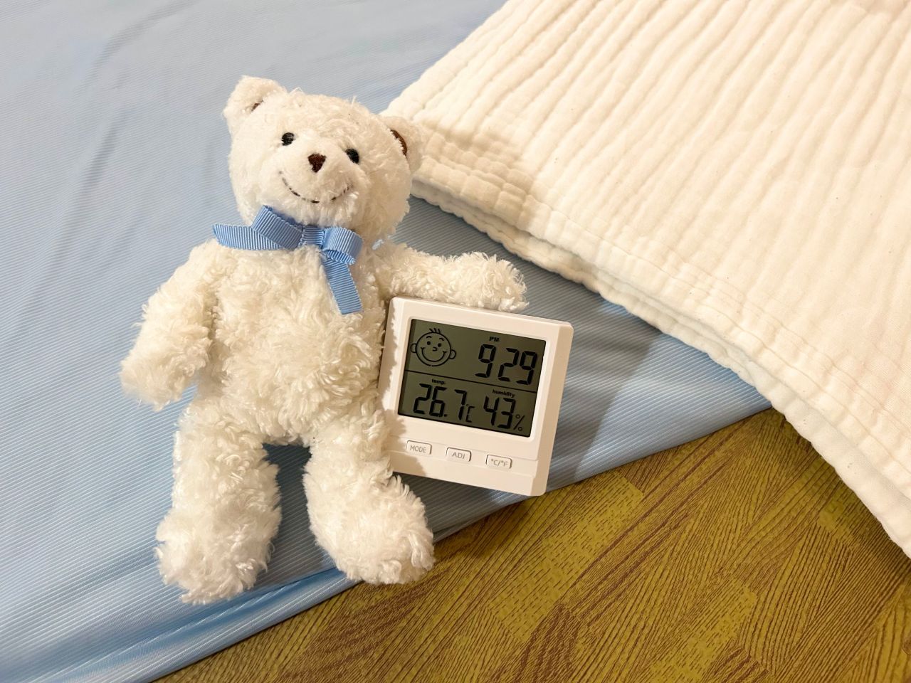 リビングと寝室に温度・湿度計を置いてクーラーとサーキュレーターを駆使して温度管理をしております。