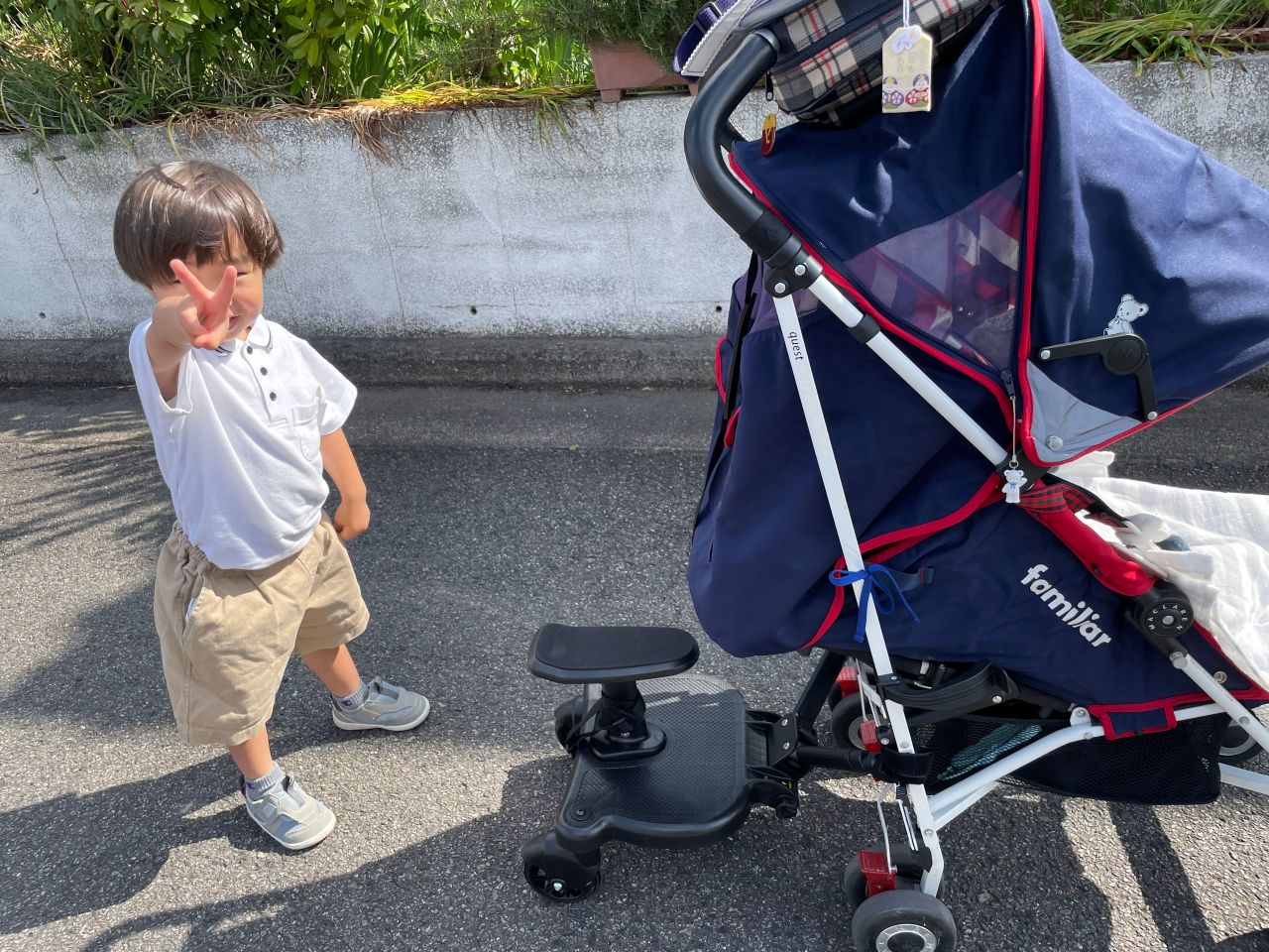 ベビーカーの後ろには、お兄ちゃんが乗る用のステップを付けておくと