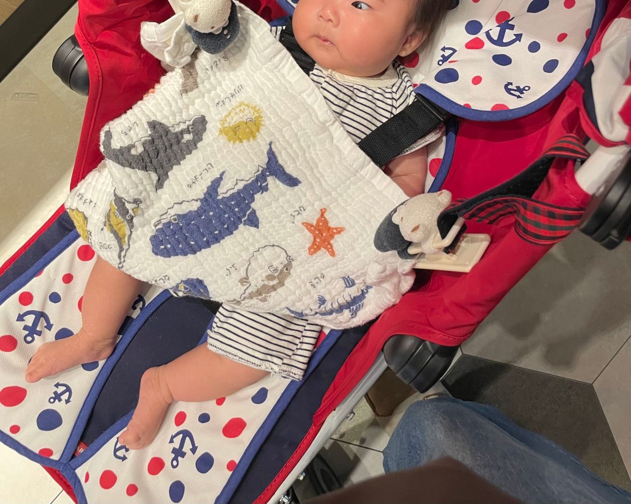 最近のお出かけは、車での移動、そして暑いために屋内が多かったので、お出かけ先には貸し出し用のベビーカーがあったり、授乳室があったりする場所を確認して選んでいました。
