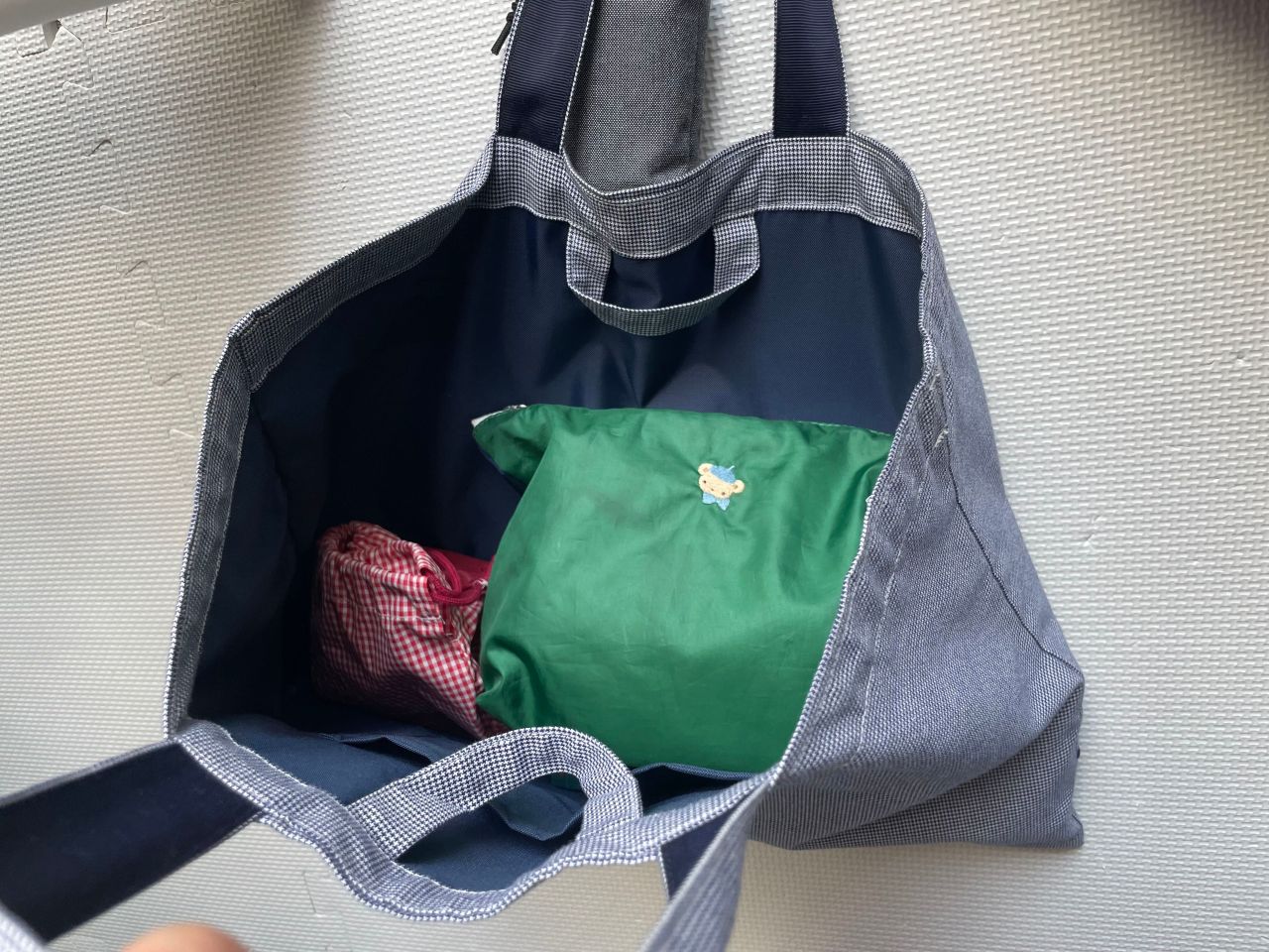 保育園に送った後、少しスーパーなどに寄りたい時には、トートバッグをプラスで持って行きます。