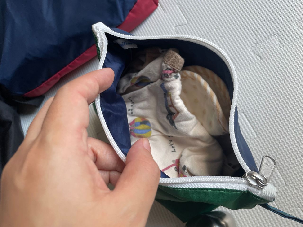 1枚のおむつをプラスしてポーチにまとめて行くことが多く、ちょっとしたお出かけなら十分です!