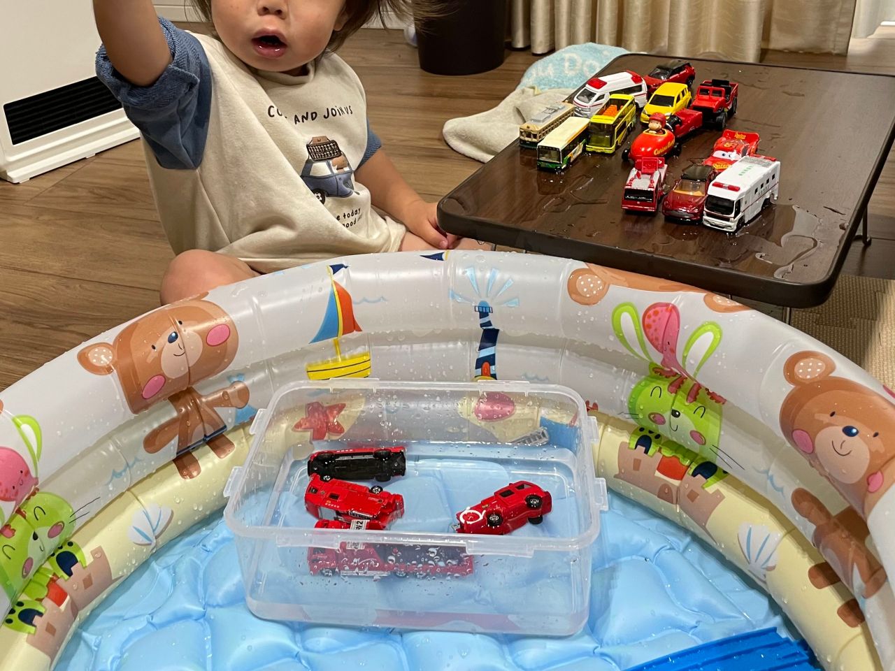 (寒い日におうちの中で水遊びしたからかな、、)