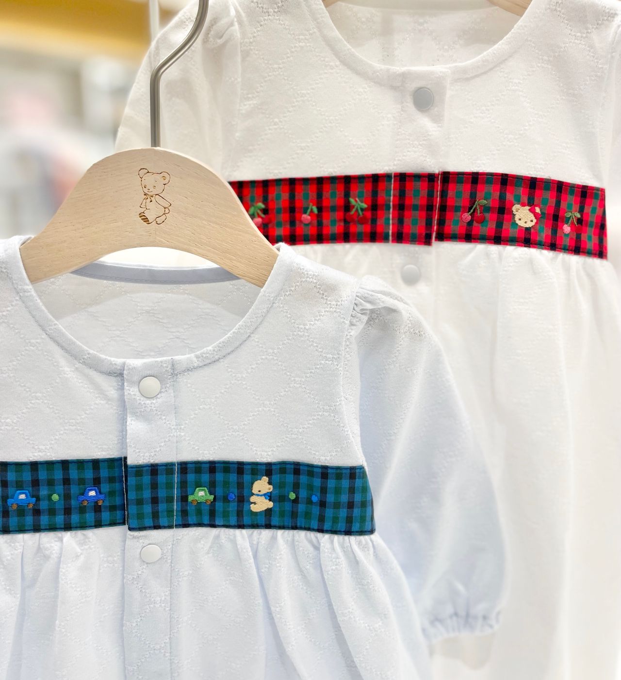 お肌着はXB(青系チェック)とXF(赤系チェック)の2種類と、50cmもしくは60cmの2サイズからお選びいただけます。