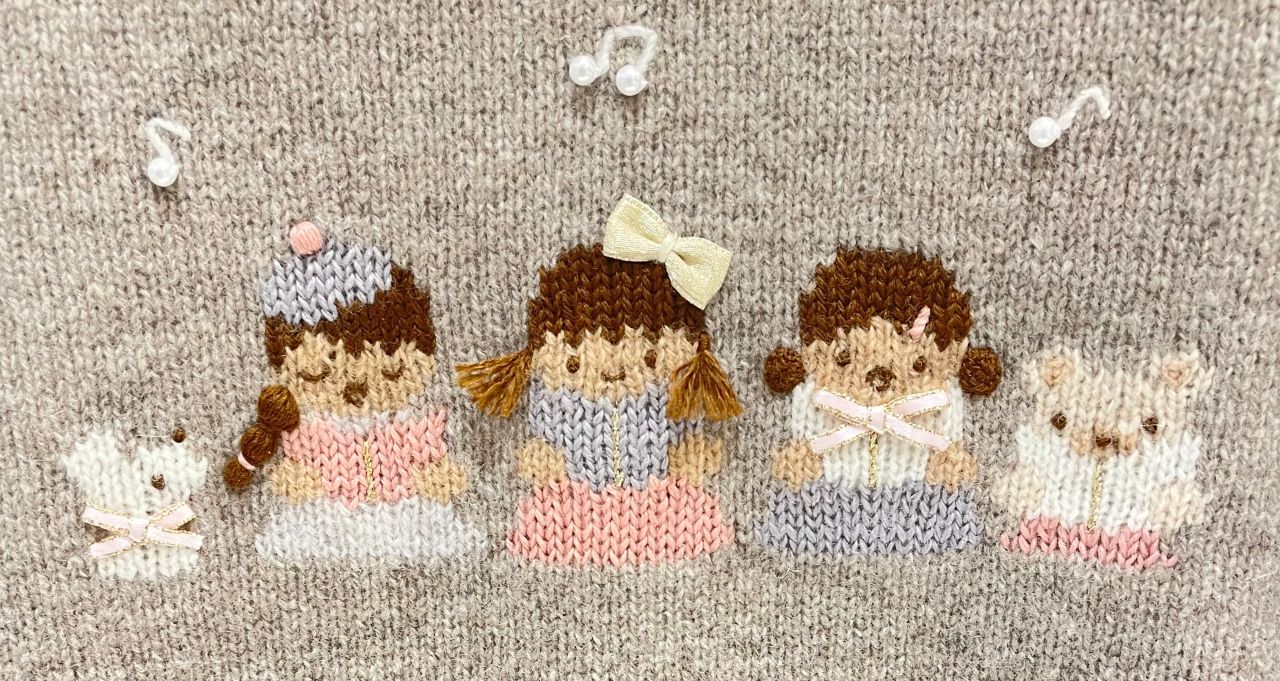 女の子と動物達が楽しそうに合唱しているアートのセーター。