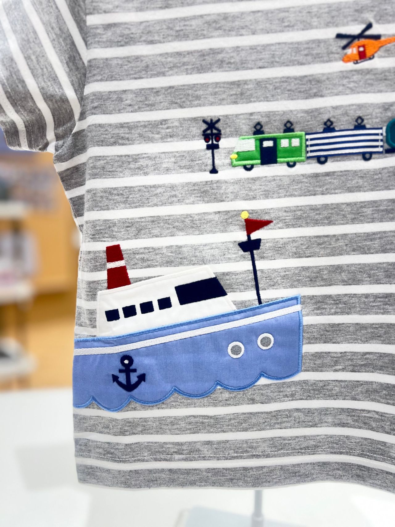 グレーにホワイトのボーダーが爽やかなTシャツです。