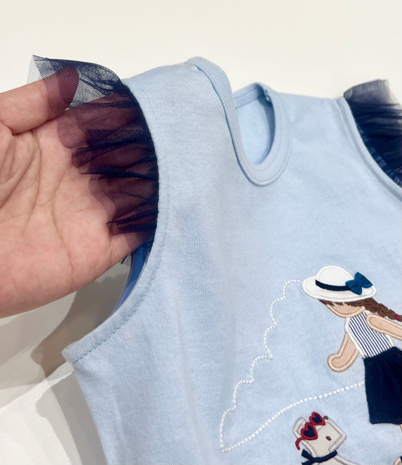 袖のチュールを女の子のスカートに使用した遊びのあるアートです。