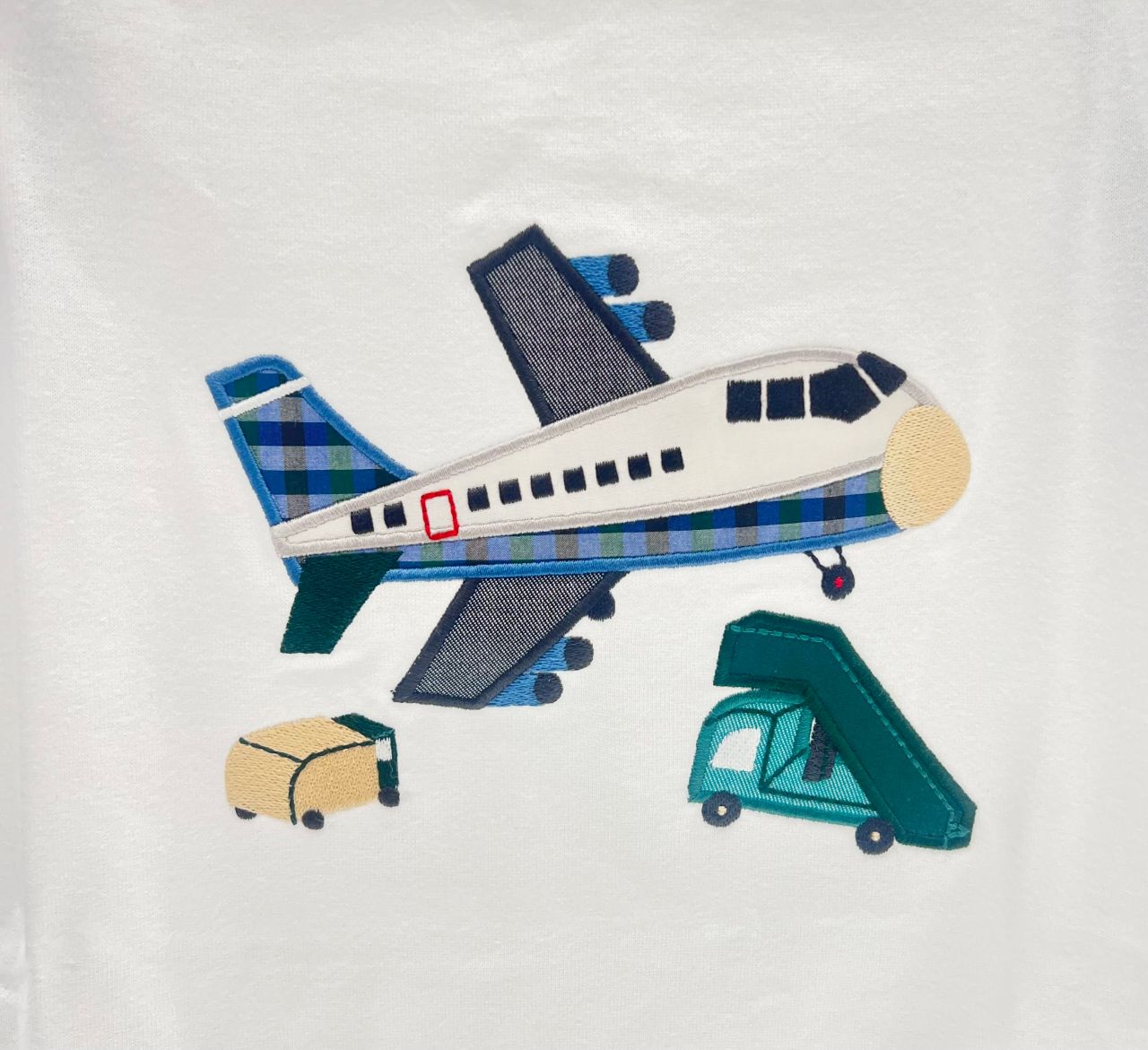 ホワイトに袖のブルーの切替デザインが爽やかなTシャツです。