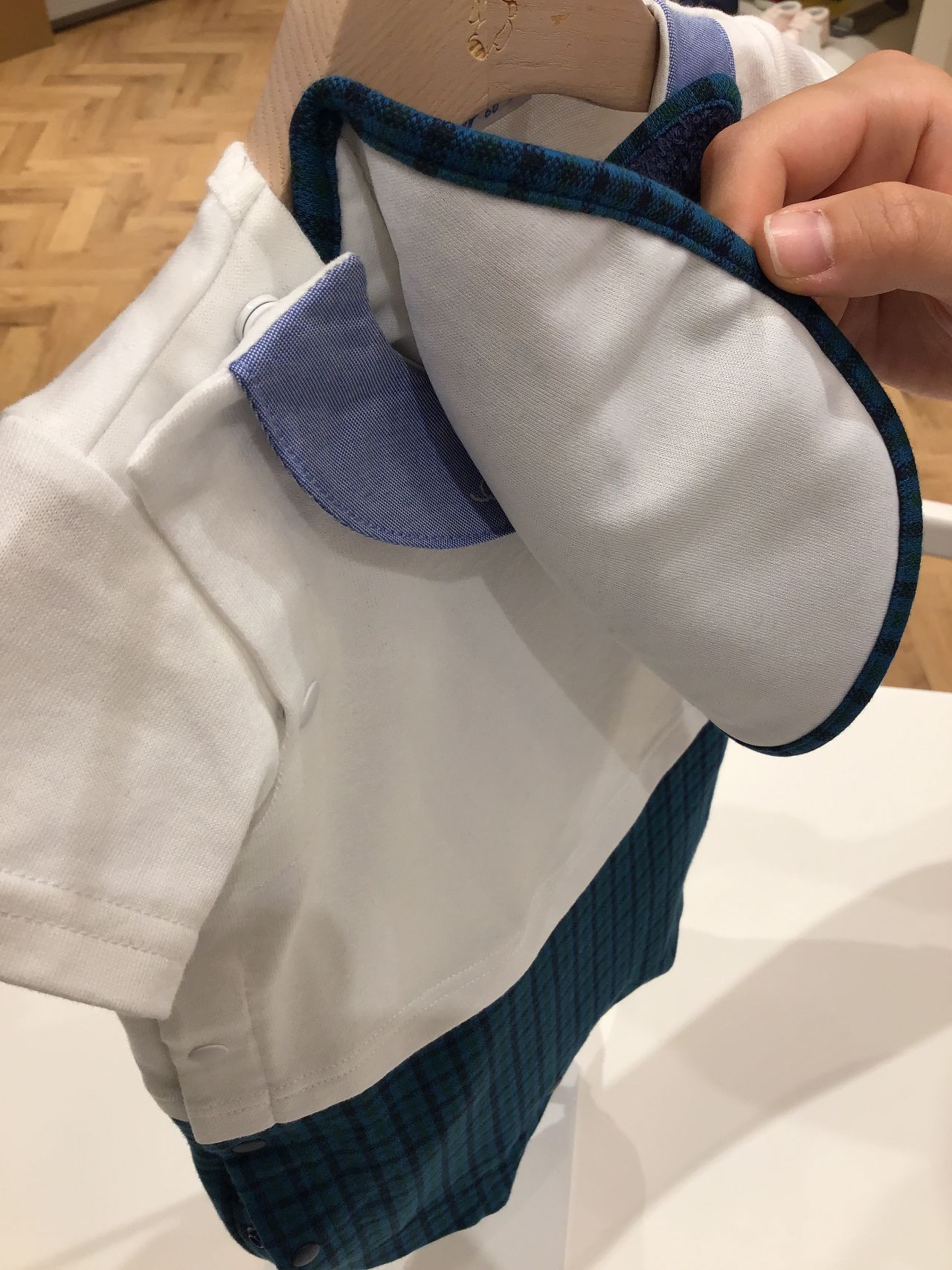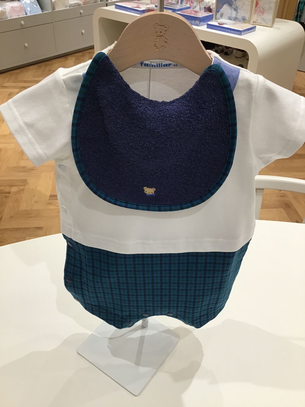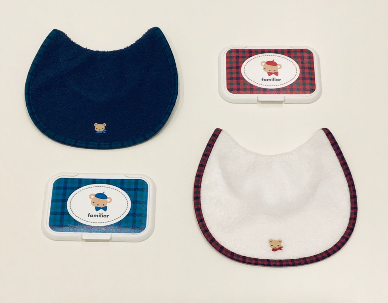 ファミリアチェックの縁取りとクマの刺繍がポイントです♡