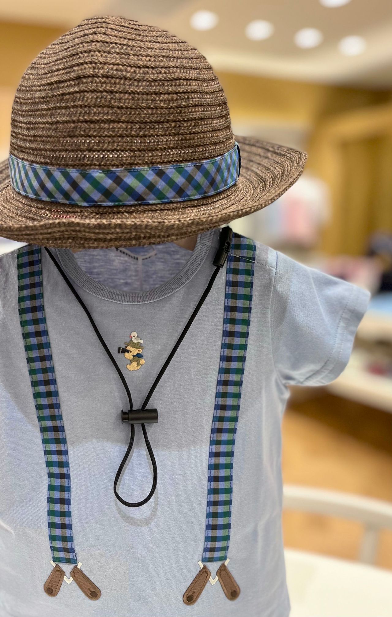 帽子とTシャツのチェックがお揃いになっていますよ!