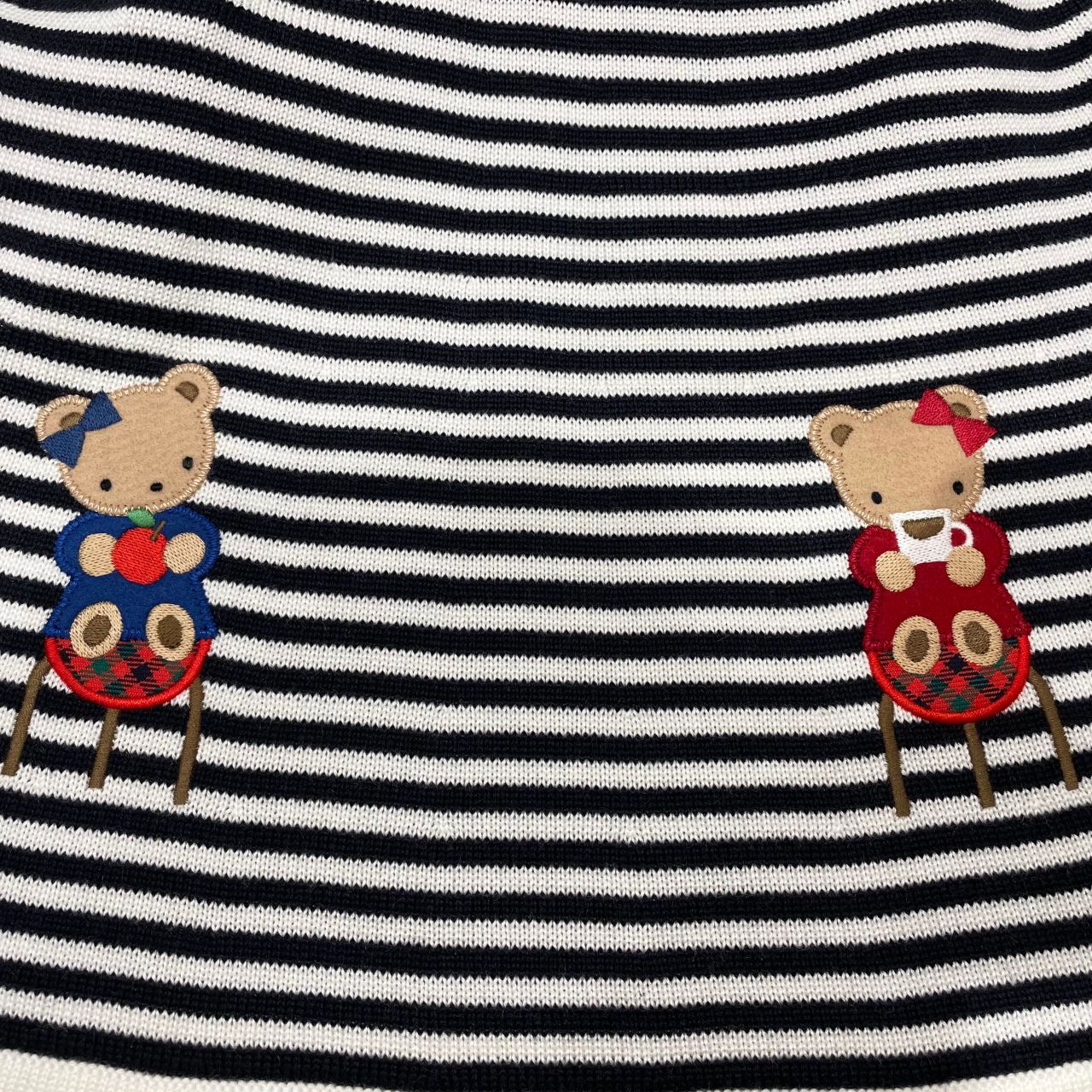 ボーダーに襟ぐりのレッドの配色が可愛いデザインです。