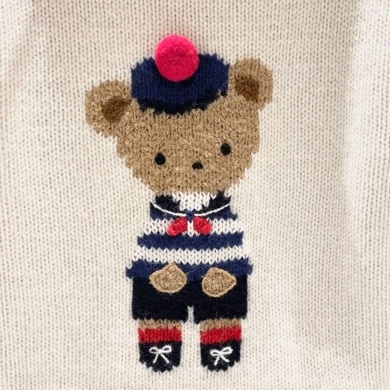 冬のマリンルックを着たクマちゃんのアートはボーダーのお洋服と帽子のレッドのポンポンがポイントです。