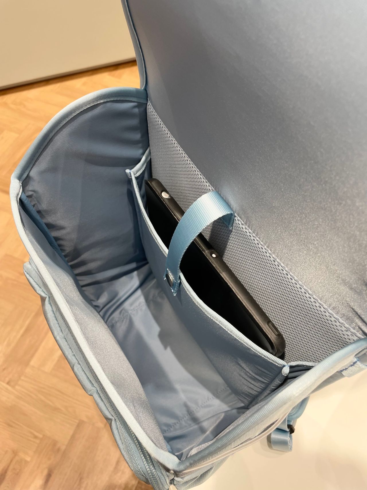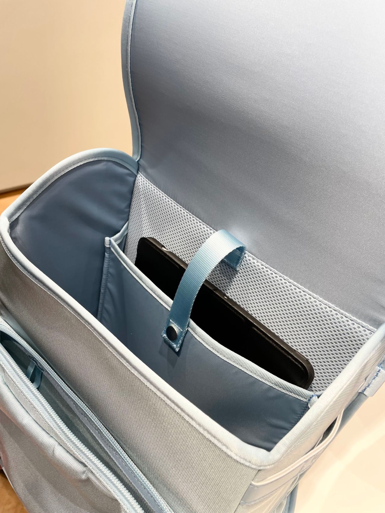 ⭐︎タブレットポケットはベルト付きで深さもあり、安全に収納していただけます。