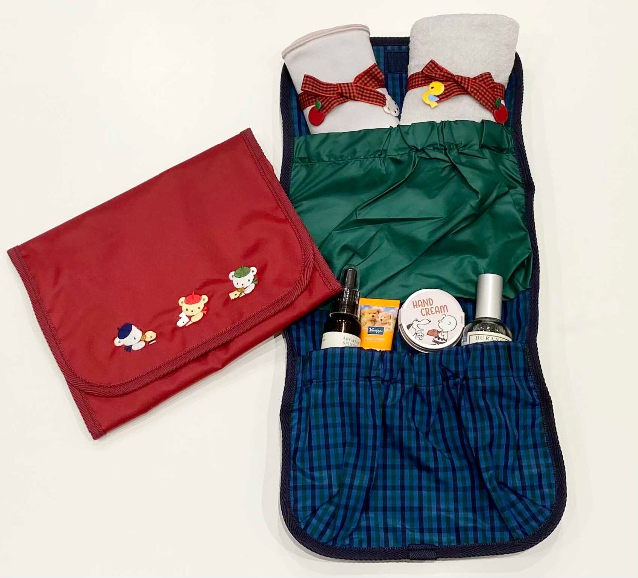 除菌アイテムのほか、お気に入りのリラックスグッズを入れて持ち運びにも◎