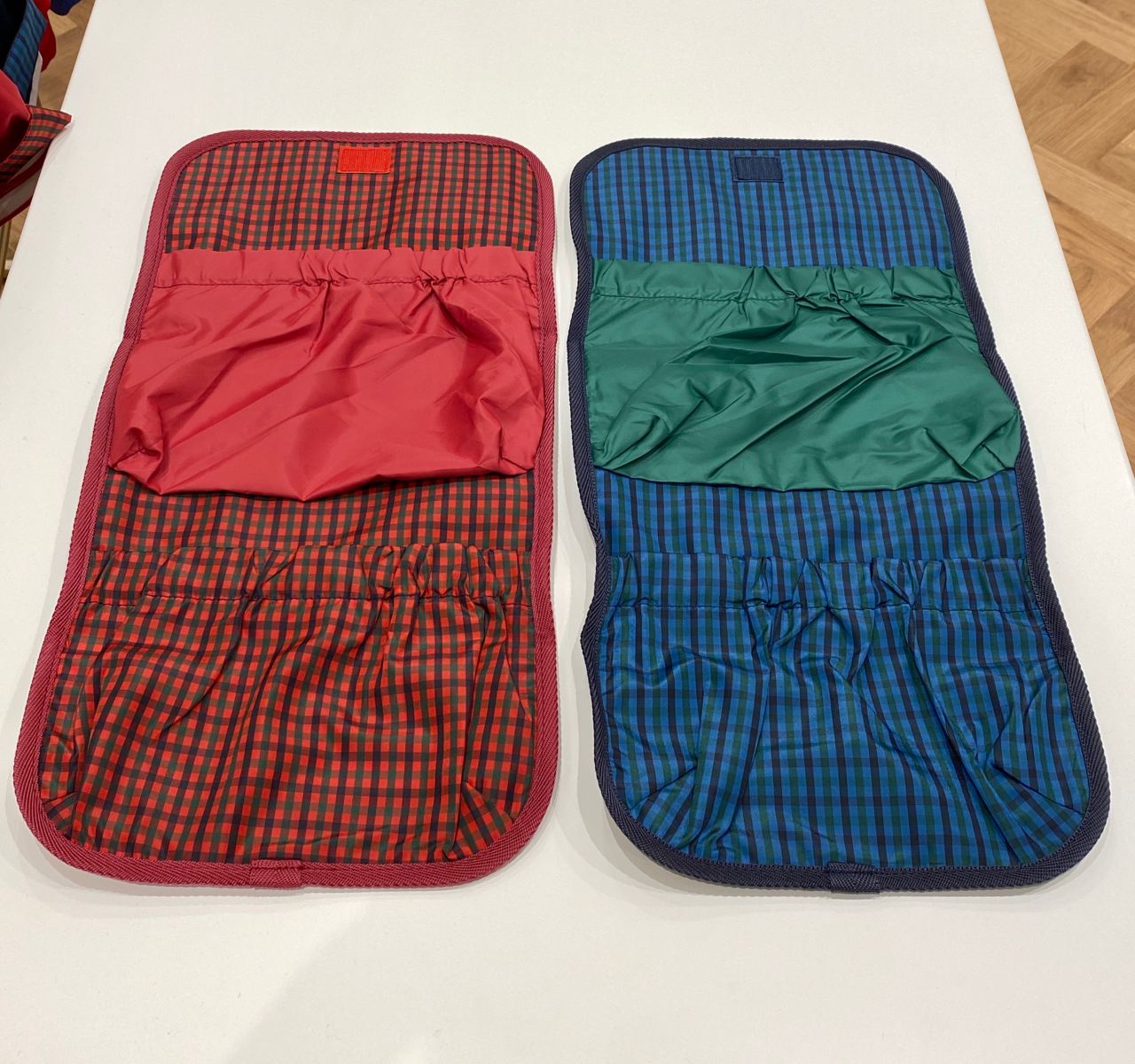 赤系チェック×赤、青系チェック×緑の組み合わせもかわいいですね♡