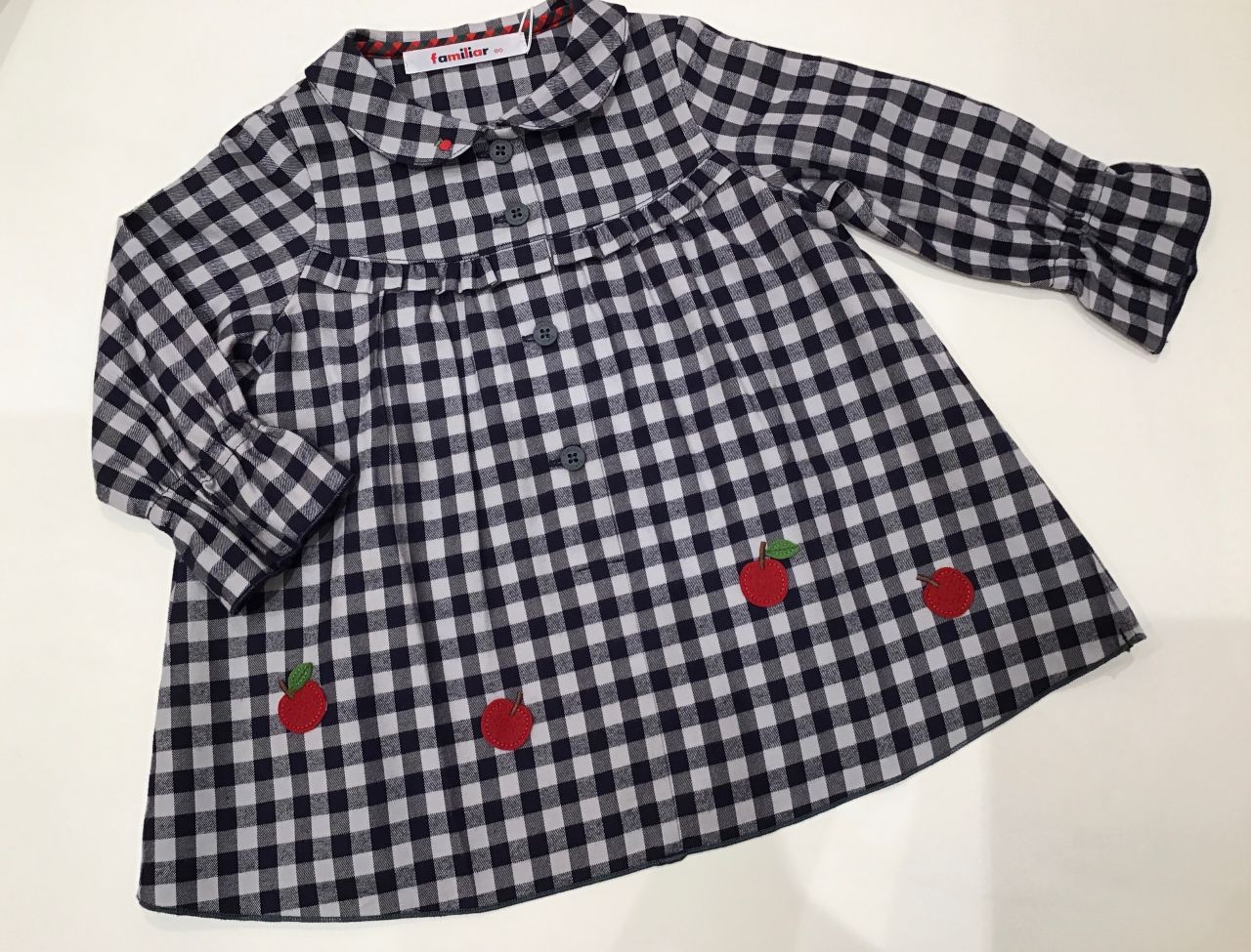 衿元と裾のりんごがポイントになっていて可愛いですね。