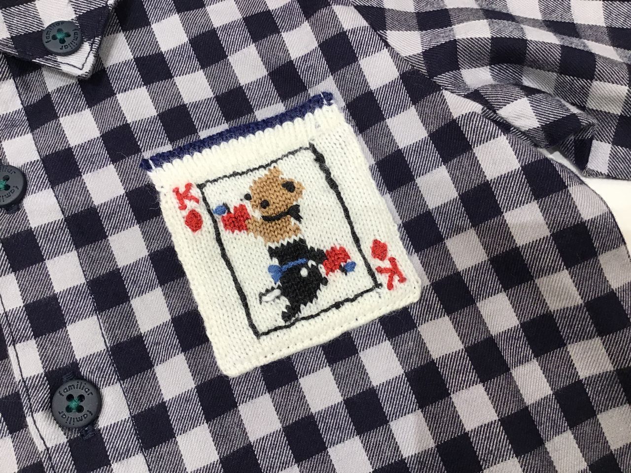 こちらのTシャツも衿元にトランプ柄の刺繍があり可愛いです。