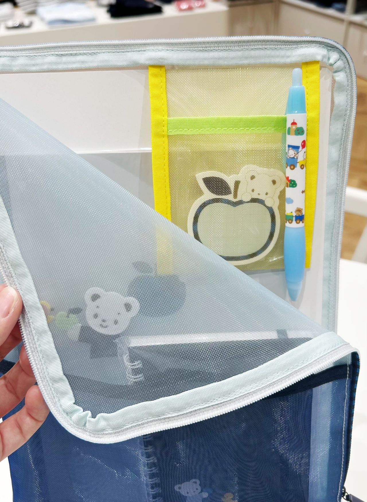 メッシュ素材で中身が見えやすかったり、小さな付箋などを入れておけるポケットもついているので整理しやすくなっています!