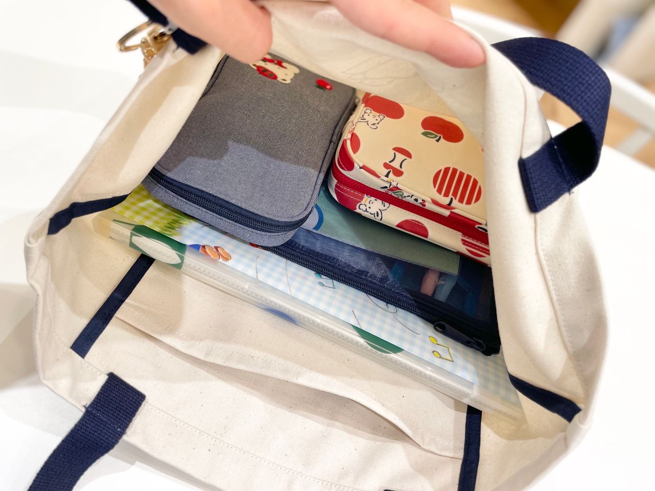 A4サイズがすっぽり入るので、資料をたくさん持ち歩く学生さんのサブバッグに、