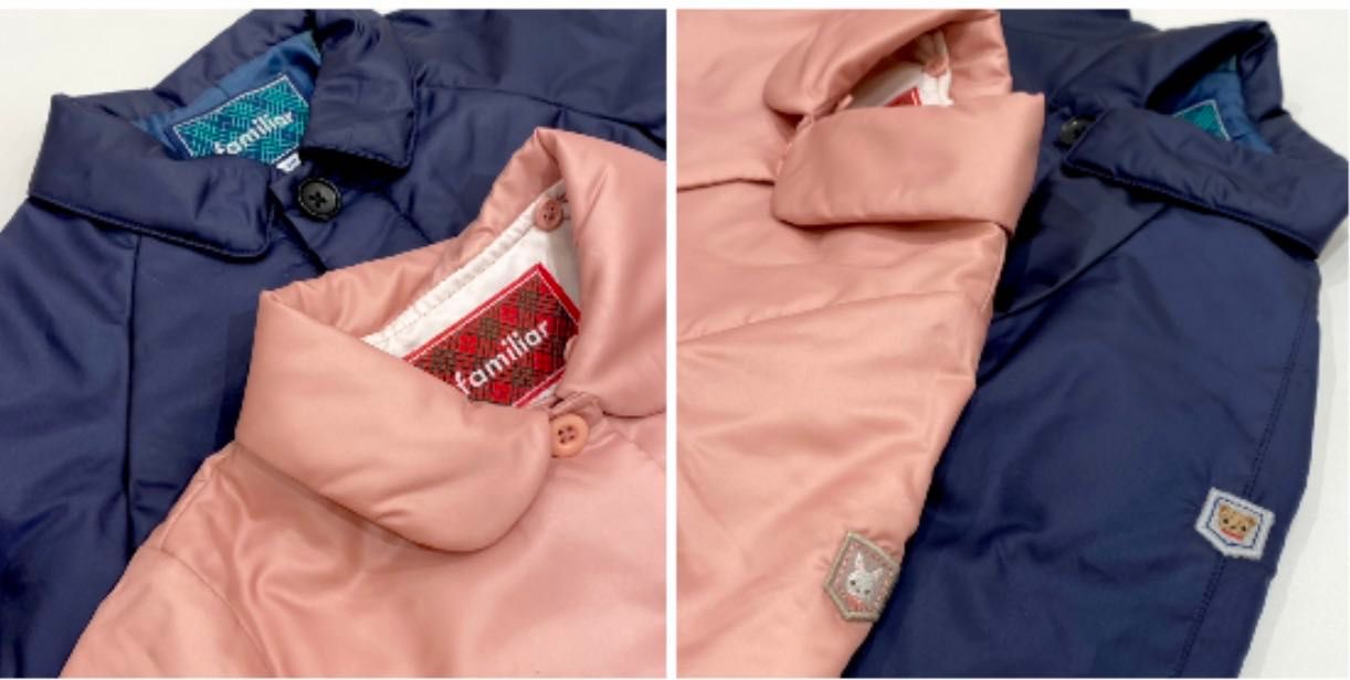 こちらの2種類のショートコートは、ネームタグや袖の刺しゅうなど、男女で共通したポイントもあるので、ご兄弟でのリンクコーデなどもおすすめです☆