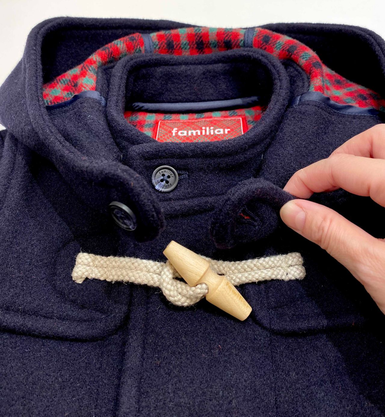 裏地にファミリアチェックを使用した一枚仕立てのリバーシブルウールは、軽い着心地がこだわりポイントです!
