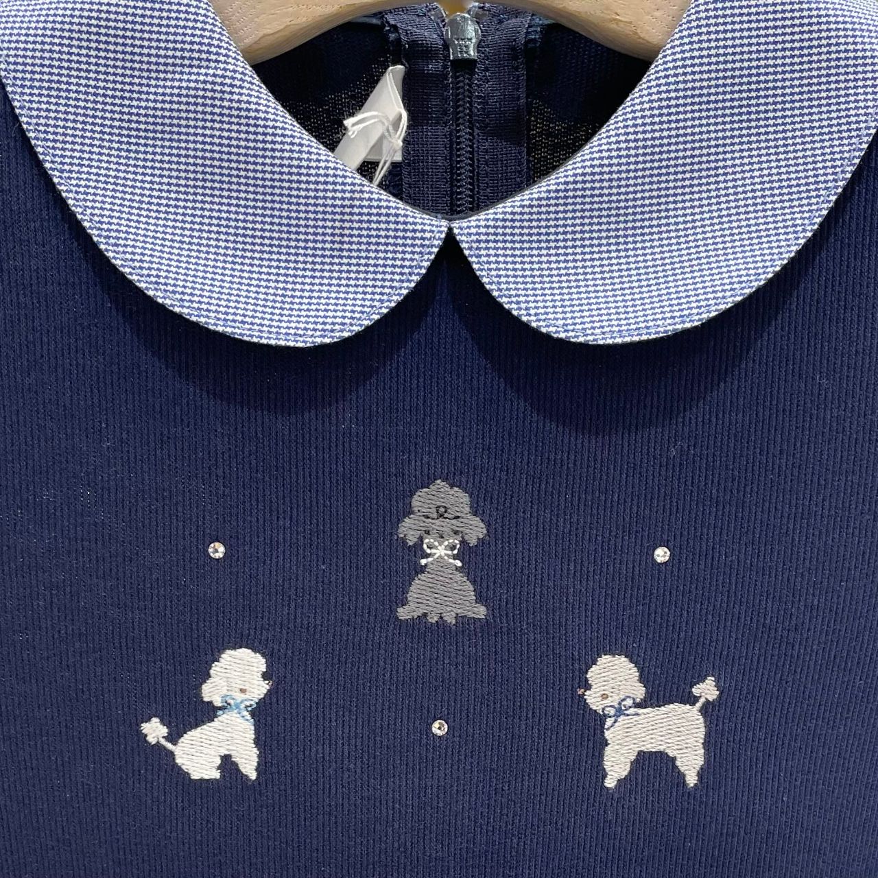 リボンで色を効かせたプードルの刺繍がポイントです。