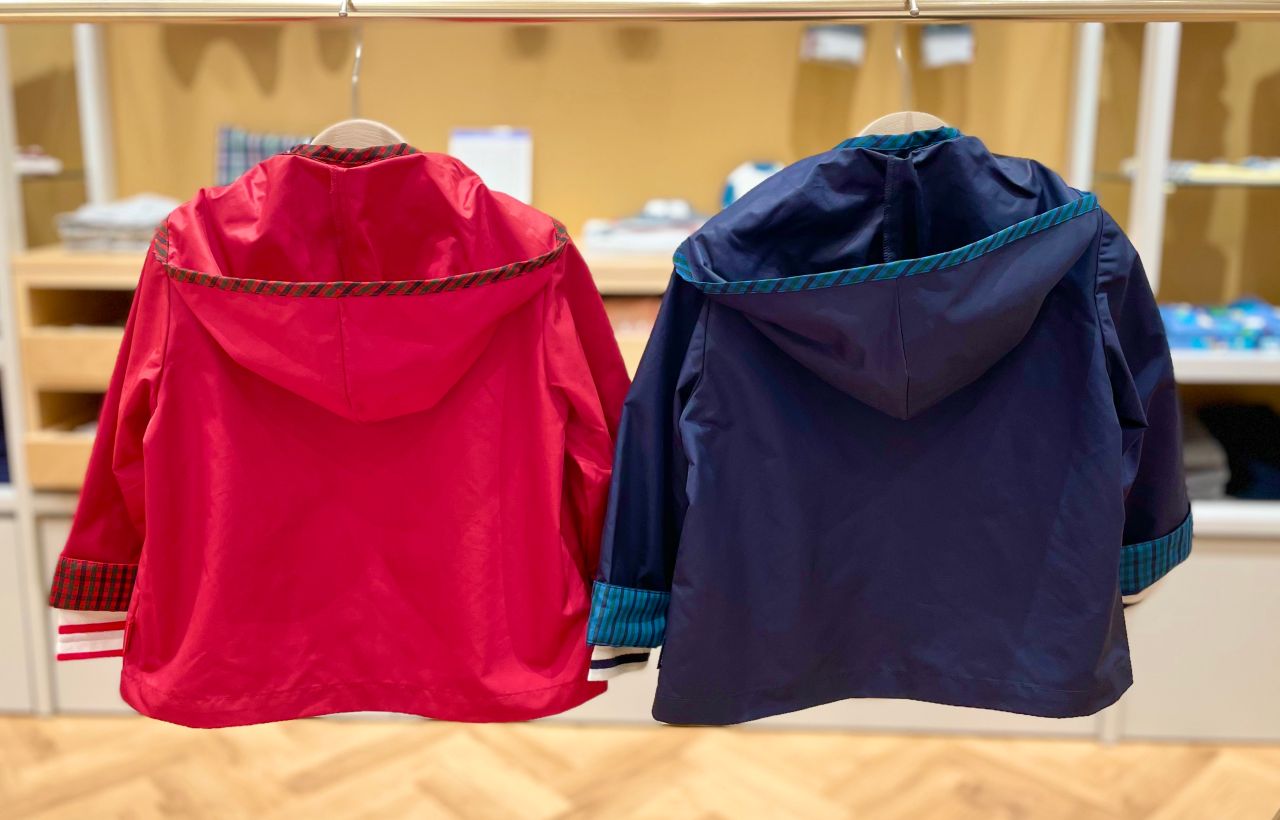 フードの縁やポケット、折り返したお袖から見えるファミリアチェックがかわいいですね♪