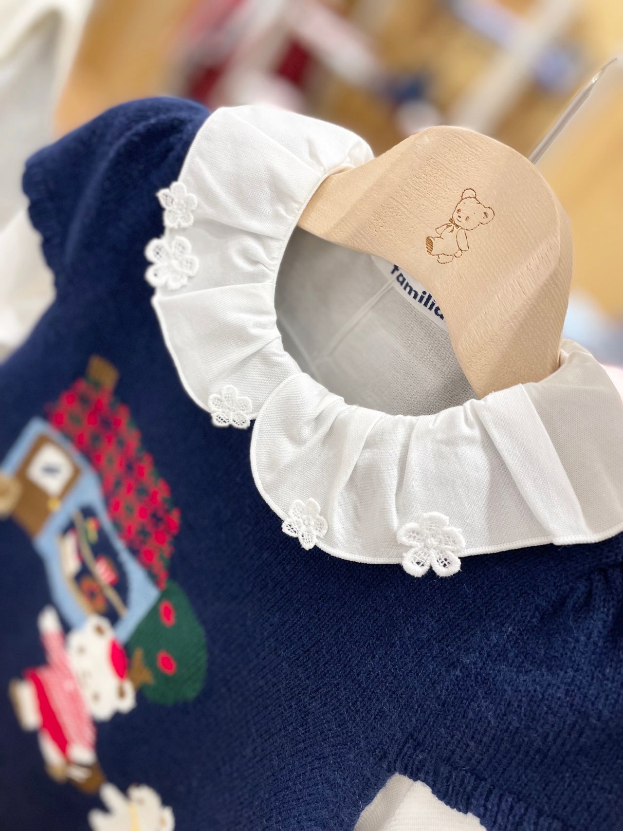 女の子の新作のブラウスには、お襟にレースのお花がついていますよ♪