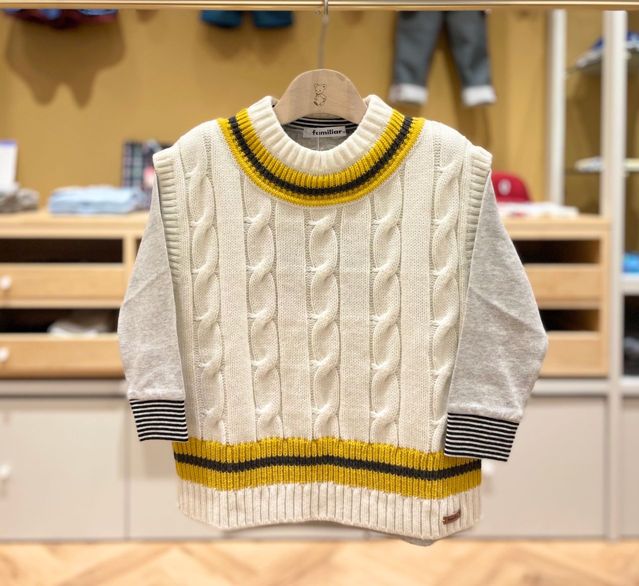 マスタードカラーにチャコールグレーのラインがポイント♪