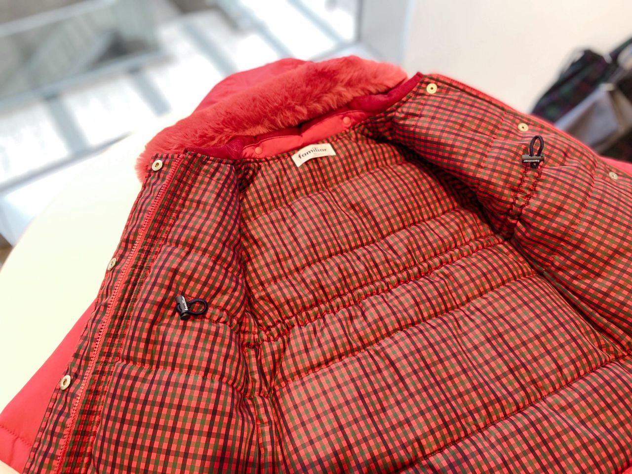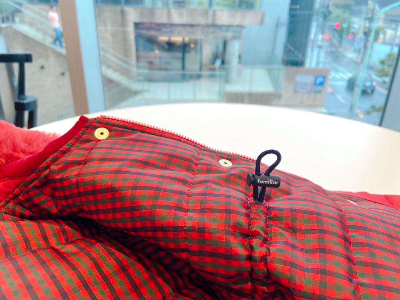 胸元には、ファミリアチェックをイメージしたビーズの手芸がシンプルながらアクセントとなっております。