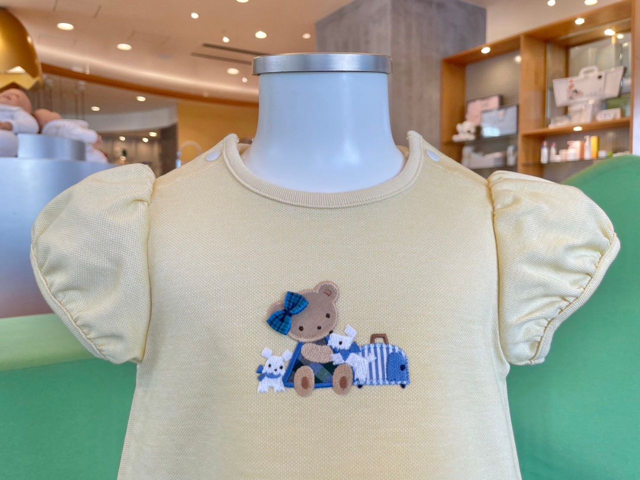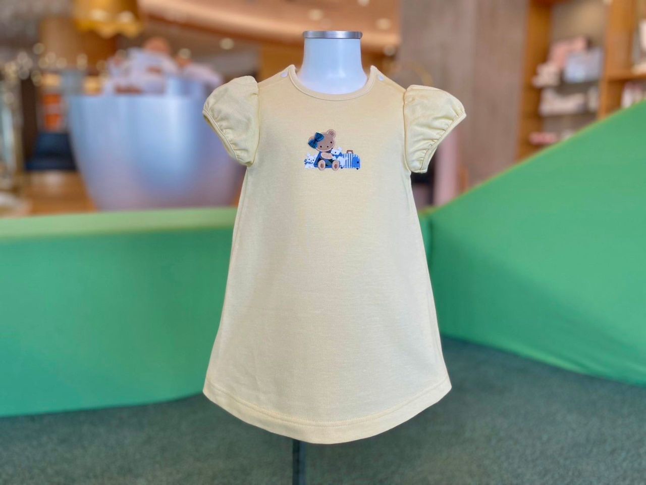 胸元には柔らかなイエローカラーのリボンとくまちゃんの刺繍も♡