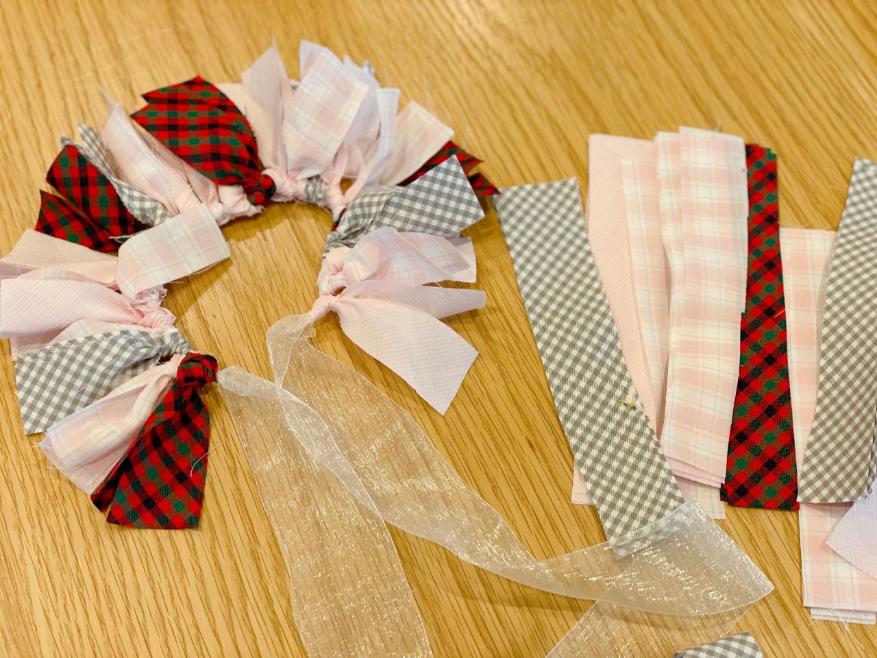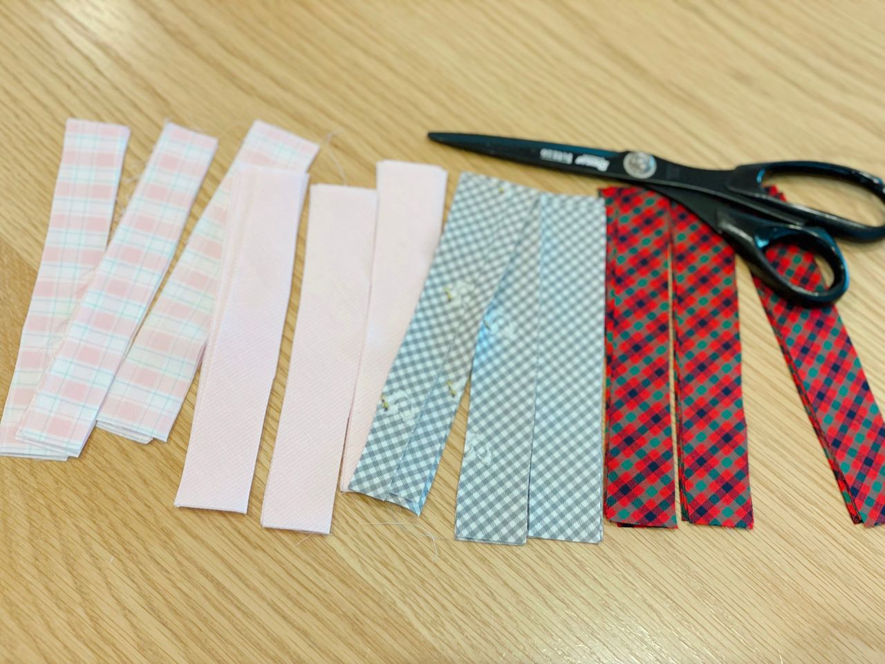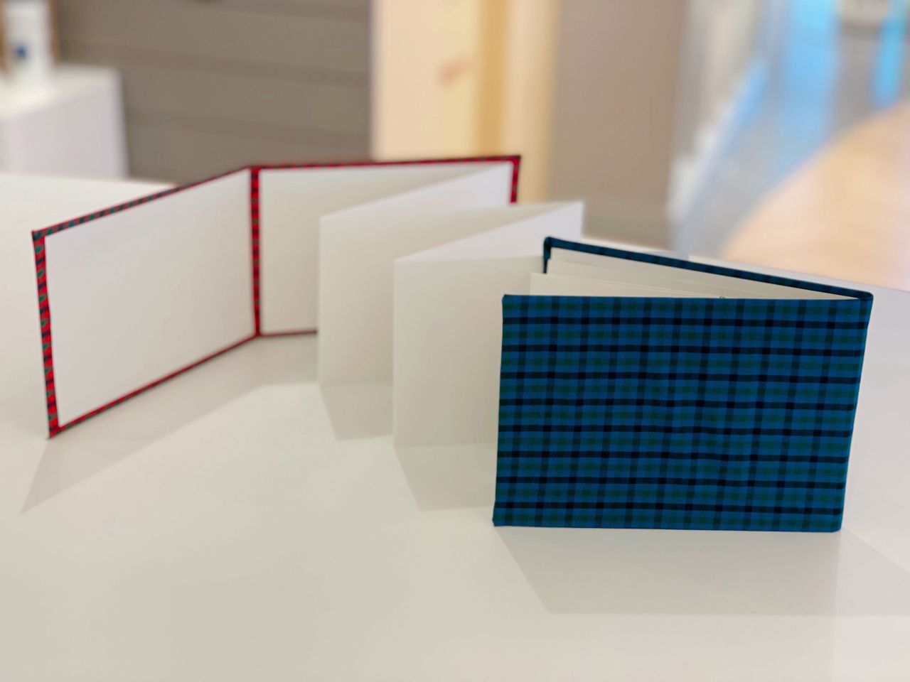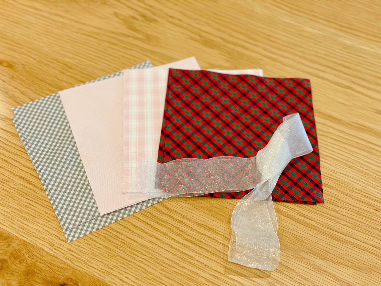 台紙にファミリアチェックの生地を貼って、アルバムをつくります。