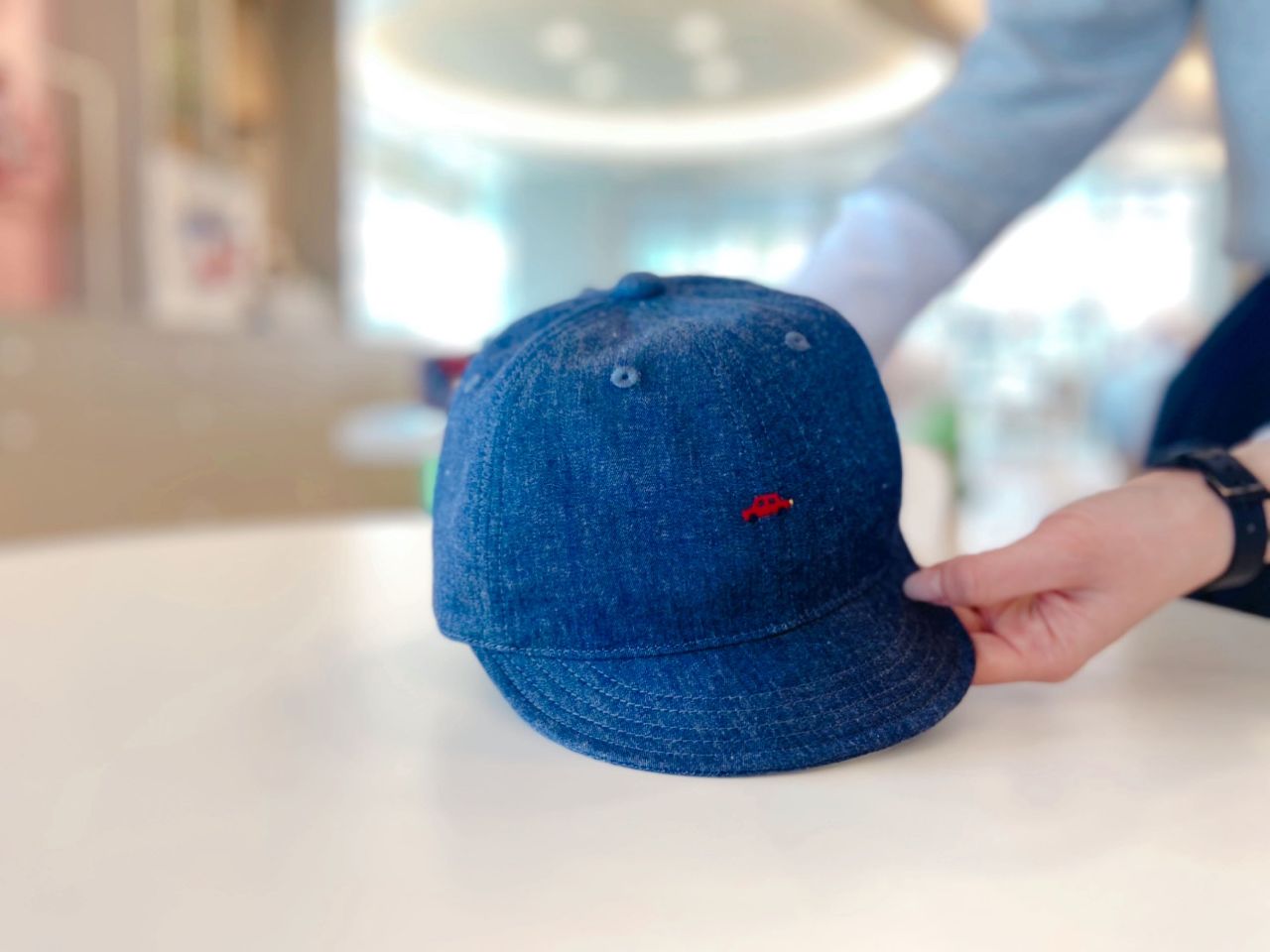 車のワンポイントが可愛いキャップ帽と合わせて元気でフレッシュなイメージのコーディネートはいかがですか。