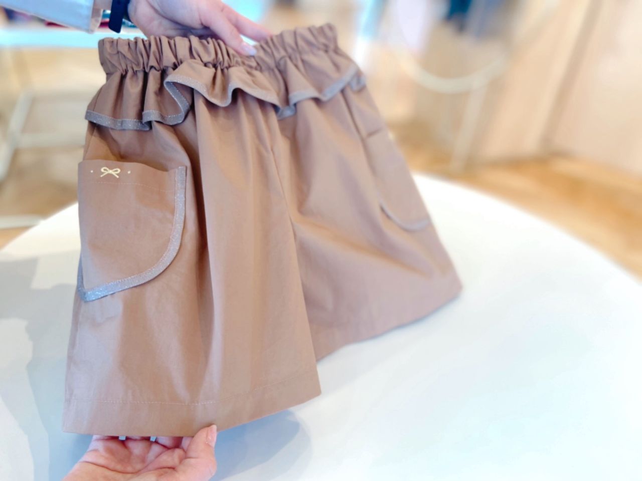 こちらもウエストのフリルやポケットのラメのリボンの刺繍が女の子心をくすぐります❤︎