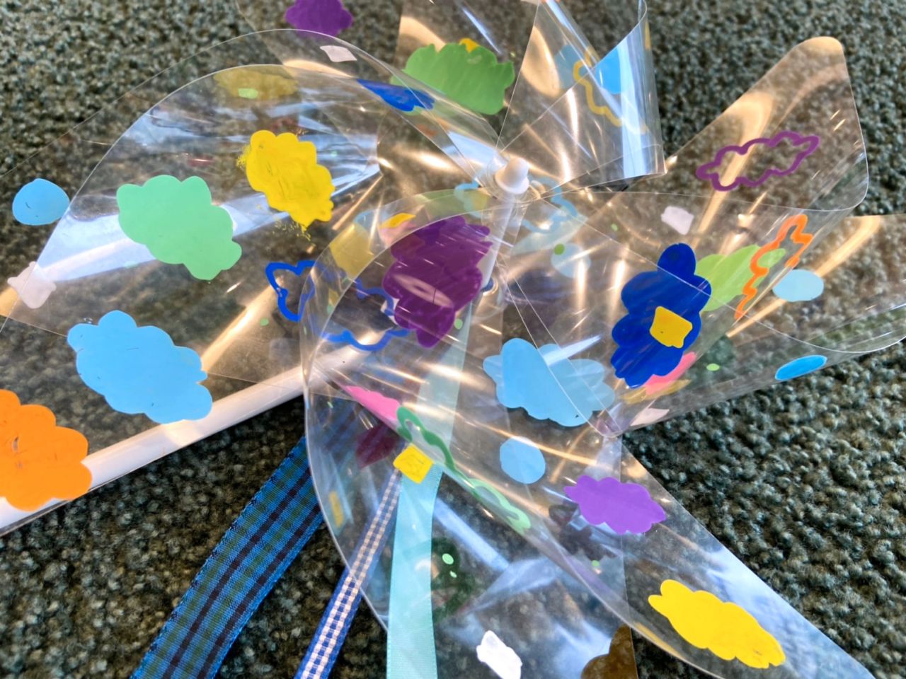 大きな透明シートに好きな色でめいっぱい絵を描いてみましょう。