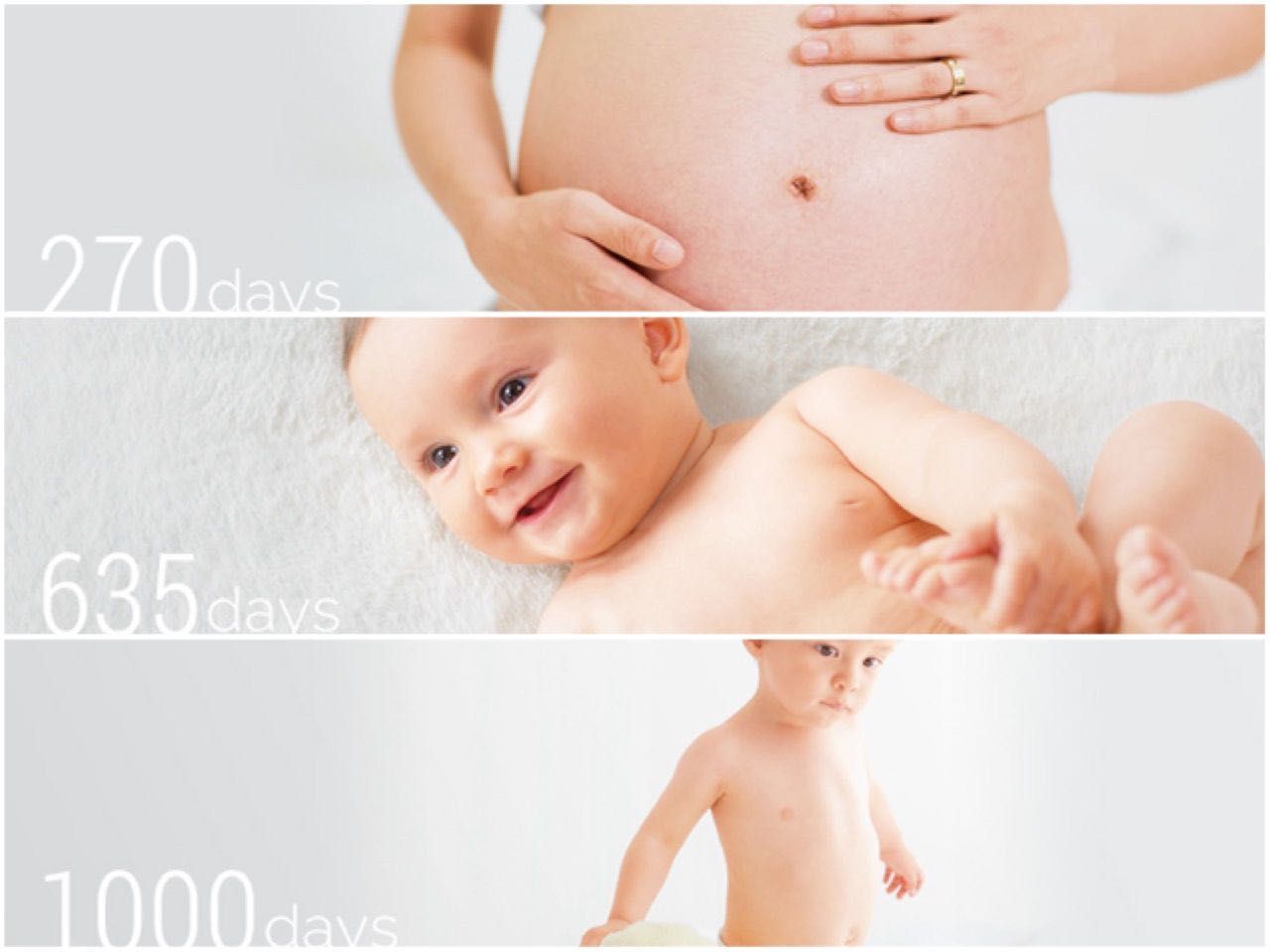 妊娠が分かってからあかちゃんが生まれるまでの約270daysと生まれてから2歳になるまでの730daysをたすとちょうど1000daysになります。