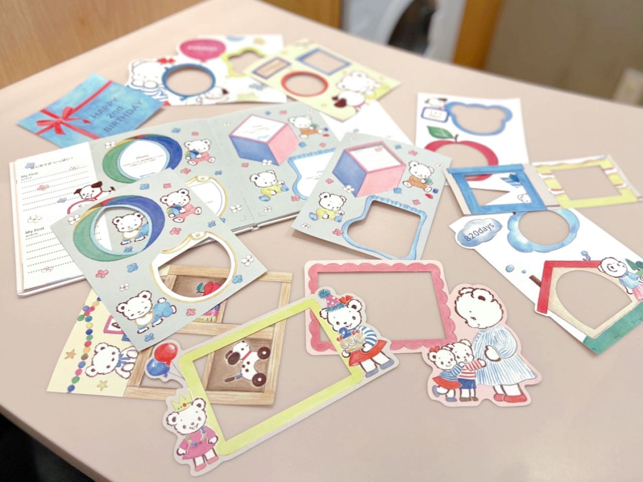 写真を貼った上に貼れる同じイラストのフレームが付属されているので、仕上がりもとってもきれいです。