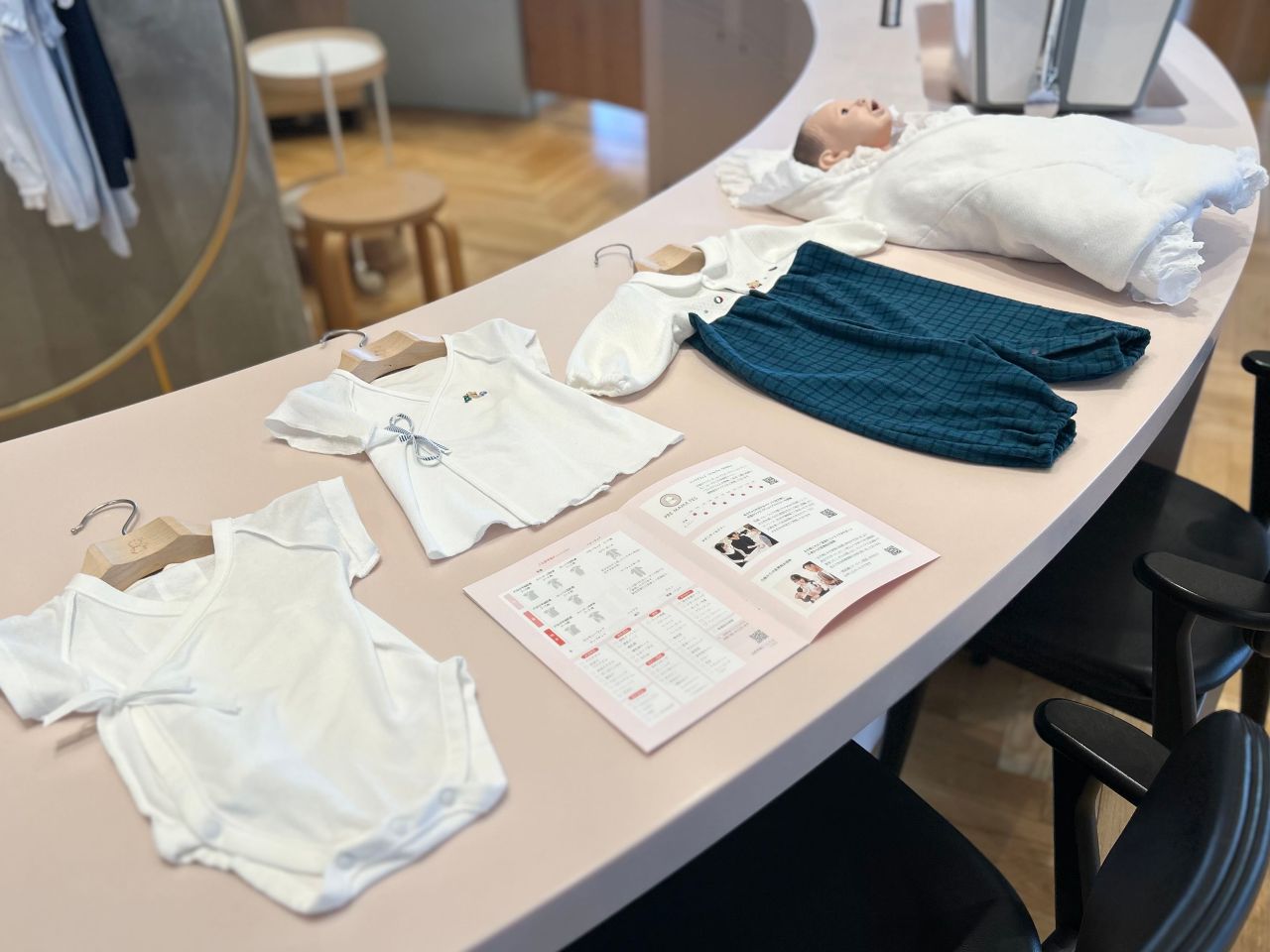 代官山店では赤ちゃんと同じ体重、身長のお人形を使って、