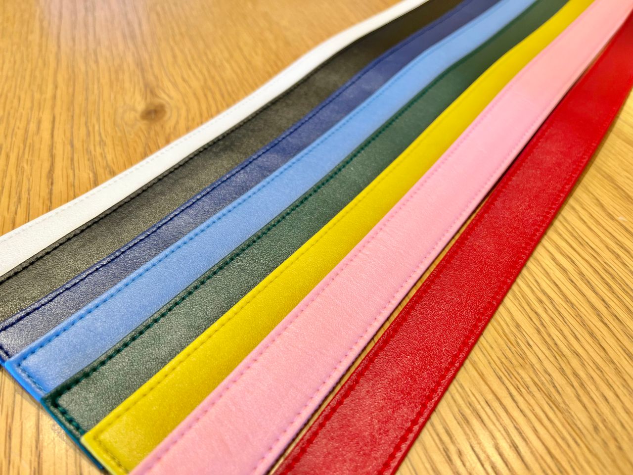8色の合成皮革生地から1色を選びます