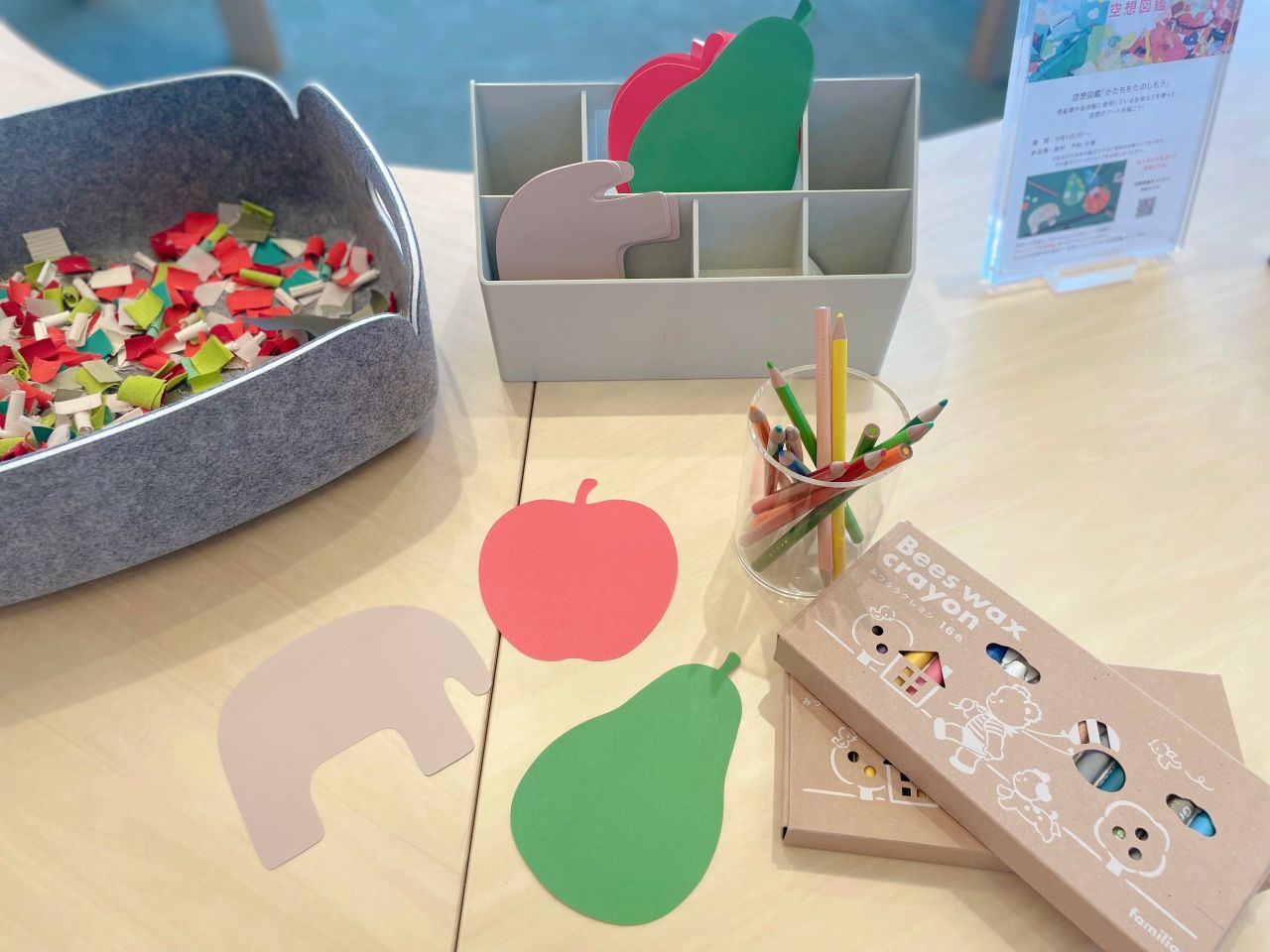 なし・りんご・ゾウのモチーフに絵を描いたり生地を張ってアレンジを楽しみましょう!