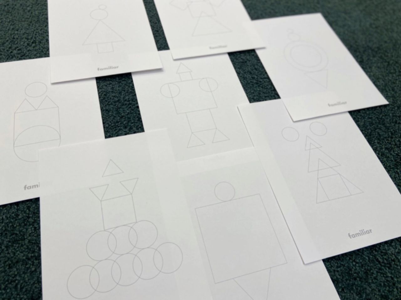 ○△□を顔や体に見立てたり、手や足を付け加えたり、自由な発想でデザインしてみてください。