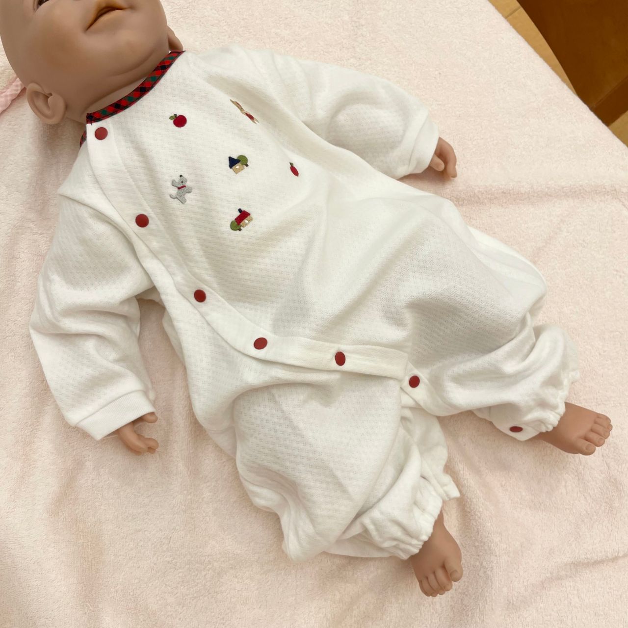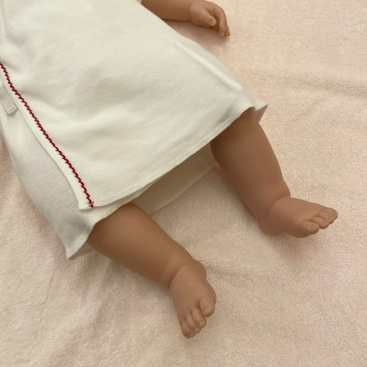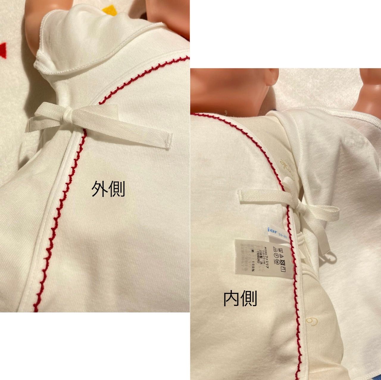 新生児さんが着るとお膝が隠れるくらいの丈感で