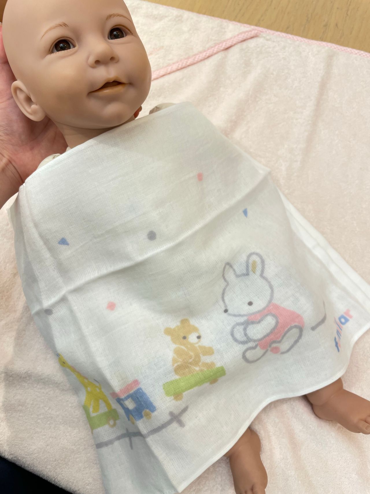 沐浴の際は、ガーゼハンカチにお湯を含ませて