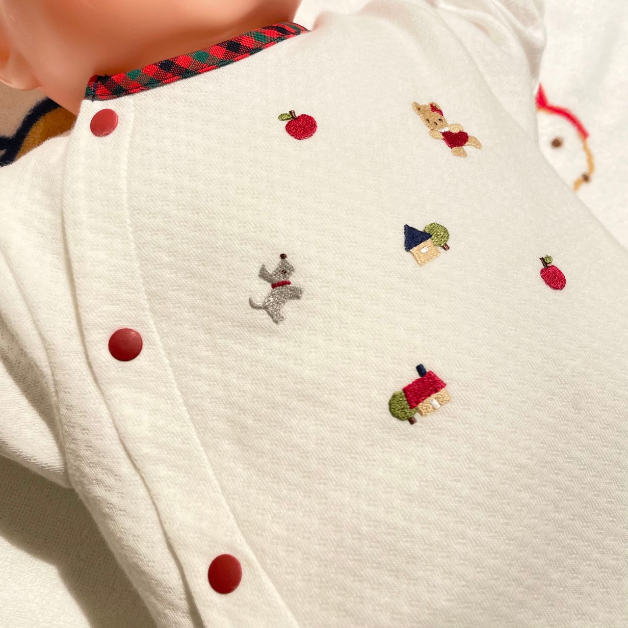 首元の縁取りのファミリアチェックもポイントです!