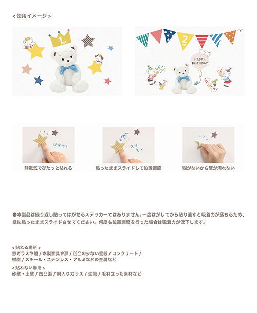 壁を汚さずにデコレーションができ、お誕生日などのイベントや、マタニティフォトにも気軽に飾り付けて楽しめます。