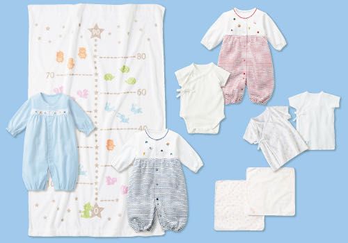 お洋服をはじめ、沐浴グッズや寝具のセットをご用意いたします。