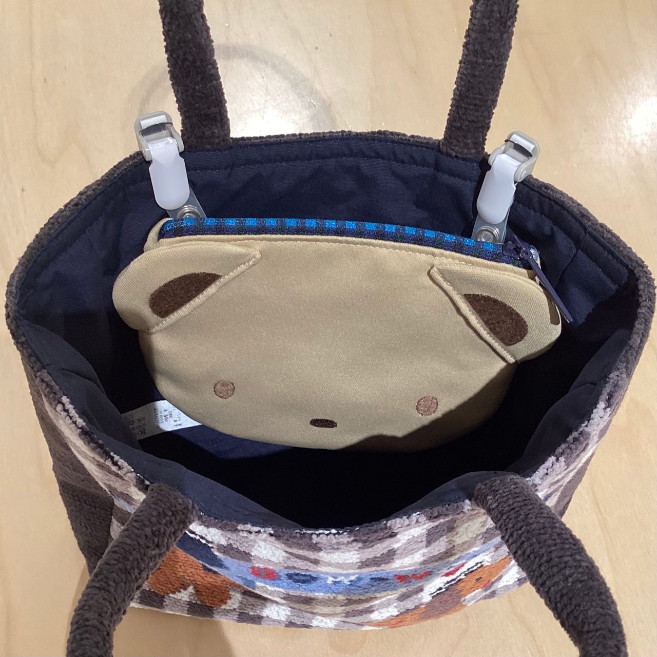 ベージュのくまさんのチャックは