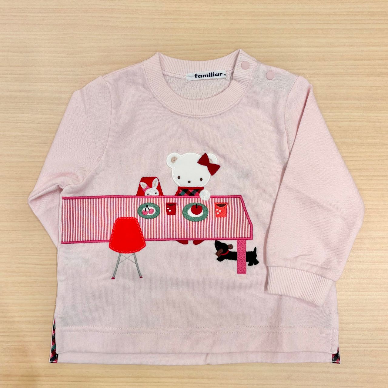 優しいピンクで春らしい薄手のトレーナーです
