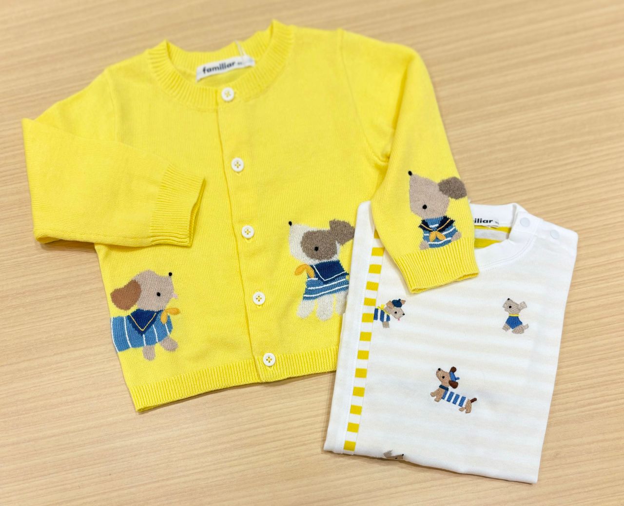 カーディガンとTシャツは、アートがリンクしています