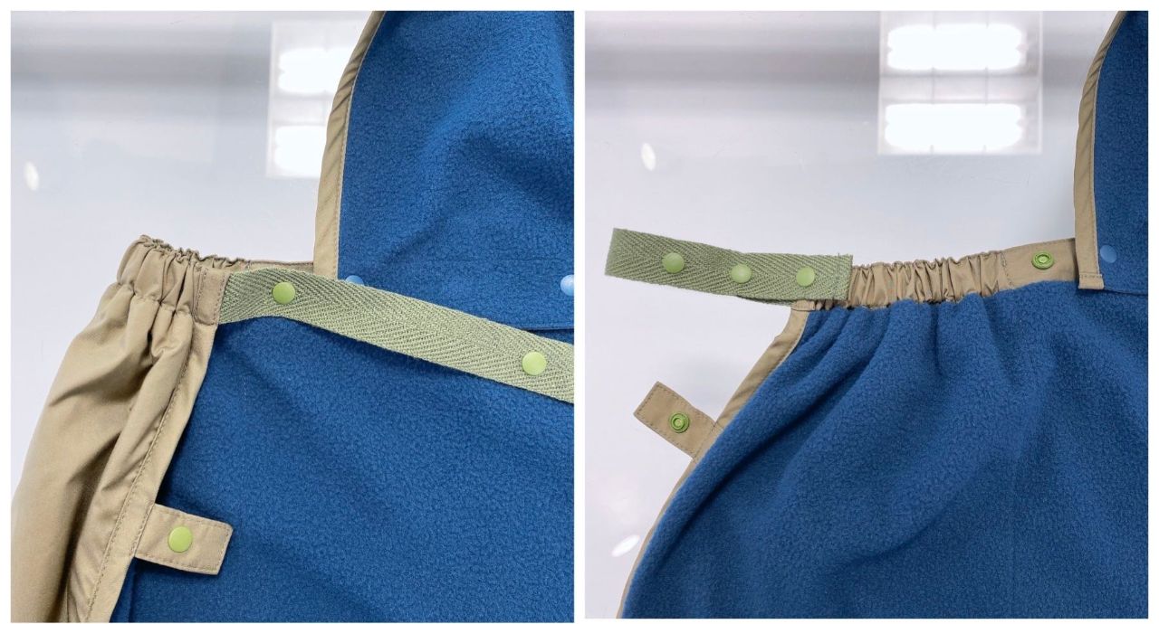 また、両脇のひもを留めるスナップが内側に1つ追加されたことにより、お子様の身長や抱っこひもの種類に合わせて調整がしやすくなりました♪